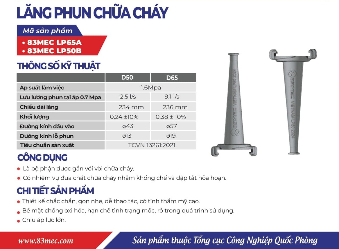 Lăng phun chữa cháy D50 và D65 Bộ Quốc Phòng